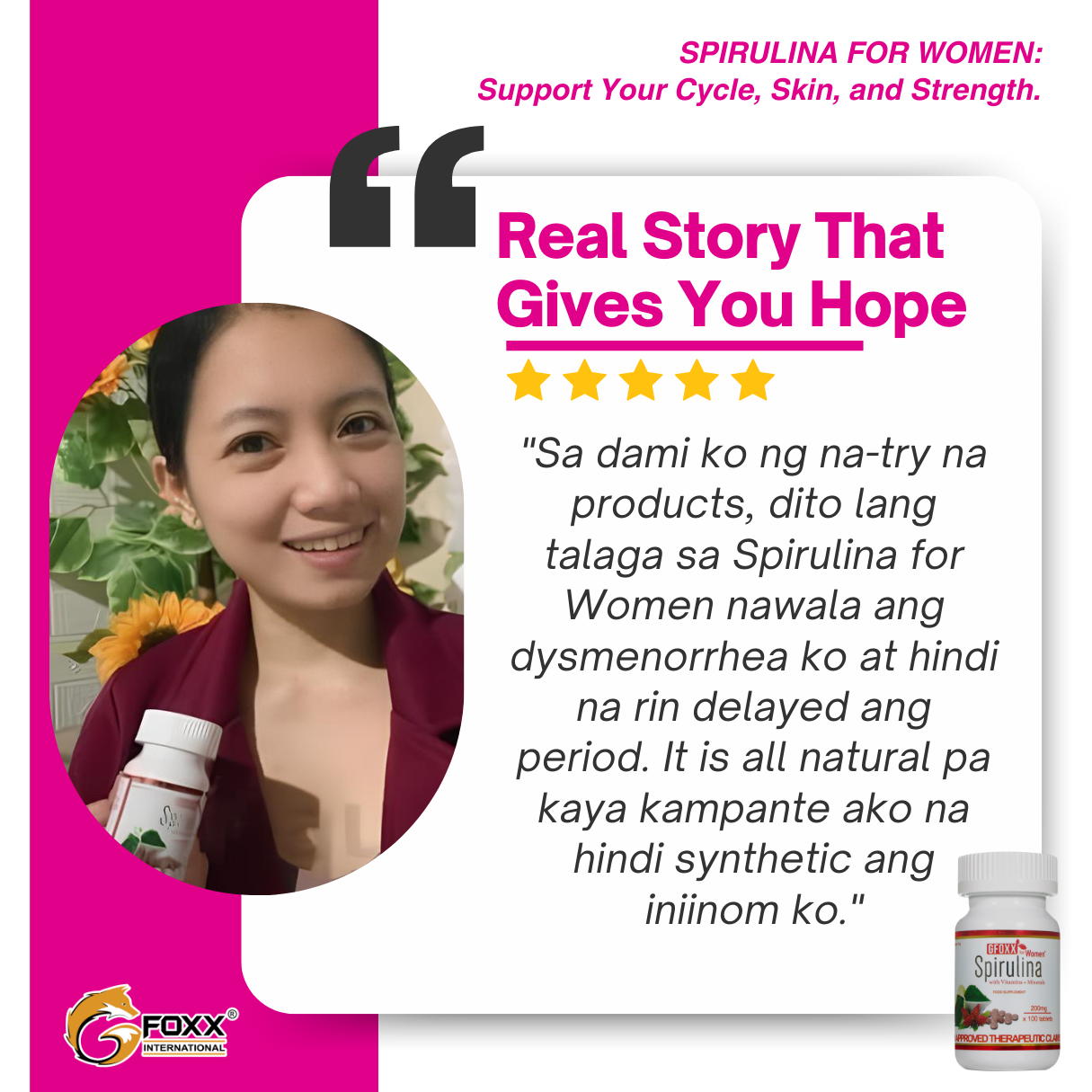Spirulina for Women is a daily supplement made from nutrient-rich spirulina, thoughtfully formulated to support the wellness needs of women. It provides plant-based nutrients that complement a balanced lifestyle and daily self-care routine.